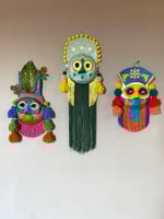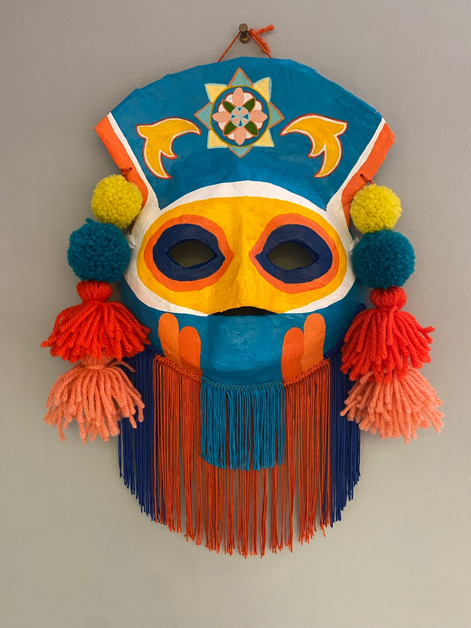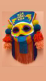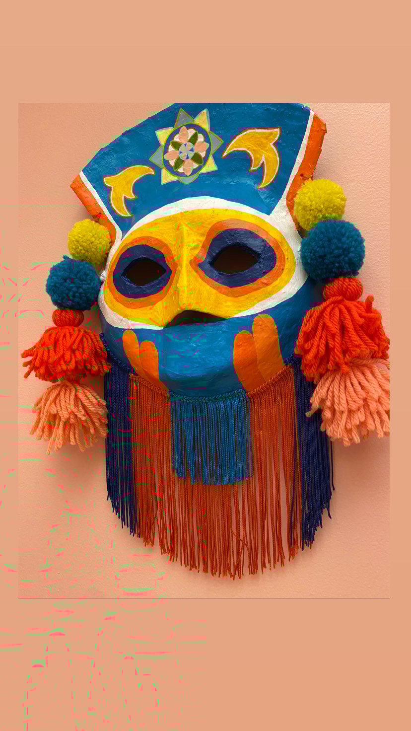 Papier-mâché folk art mask with handmade wool tassels & pompoms, rayon fringe, and acrylic hand painted design. Wearable good luck talisman has a loop for hanging on a wall in your home. ⚡️⚡️You got the gift of flipping double negatives into positive⚡️⚡️